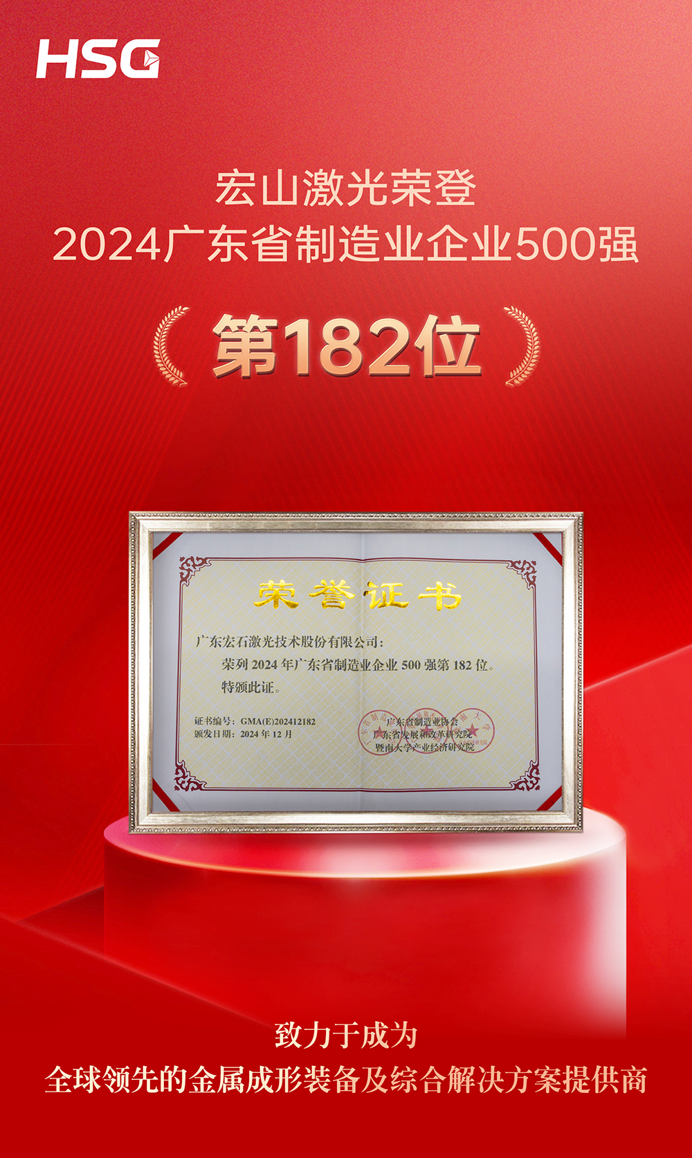 近日,由廣東省制造業(yè)協(xié)會、暨南大學(xué)產(chǎn)業(yè)經(jīng)濟研究院、廣東省發(fā)展和改革研究院聯(lián)合發(fā)布的《2024年廣東制造業(yè)500強企業(yè)研究報告》正式揭曉榜單。作為全球激光切割技術(shù)領(lǐng)域的卓越創(chuàng)新者之一,宏山激光憑借在智能激光制造領(lǐng)域的出色表現(xiàn)與穩(wěn)健發(fā)展,成功位列第182位。這一殊榮不僅體現(xiàn)了行業(yè)對宏山激光的高度認(rèn)可,也彰顯了廣東制造業(yè)在高質(zhì)量發(fā)展道路上的強大潛力。